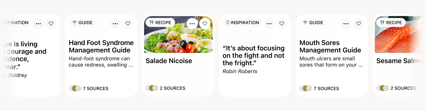 Based on what you share, Olira proactively delivers helpful resources—from symptom management guides to recipes—directly to you. Get answers and support, anytime.